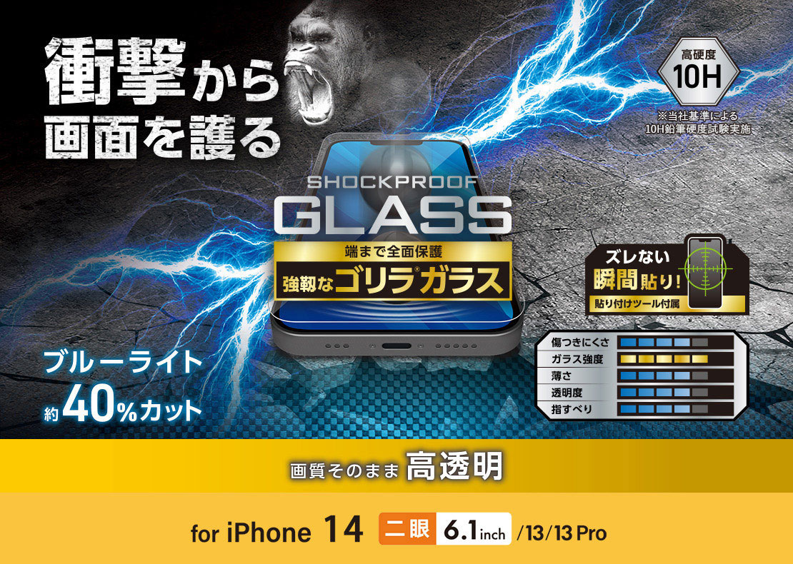 iPhone 14 ガラスフィルム SHOCKPROOF ゴリラ 0.21mm ブルーライトカット