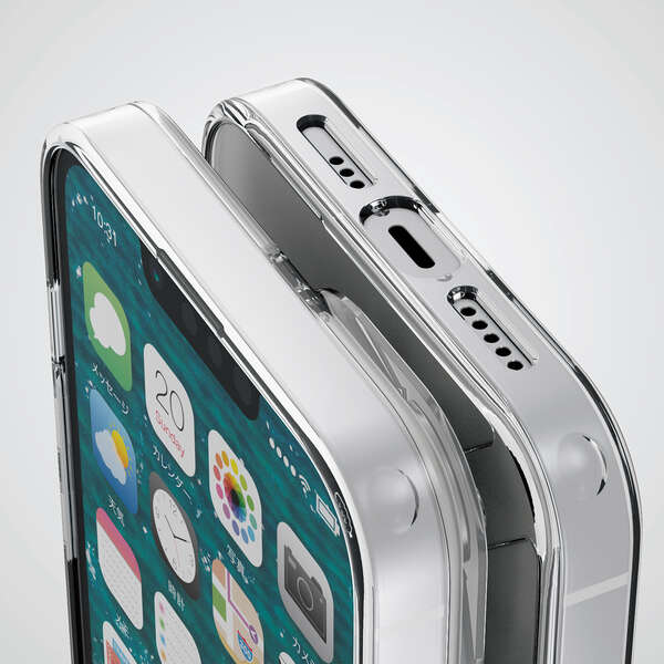 側面に高弾性・無黄変性に優れた三井化学(株)製「フォルティモ®/TPU(熱可塑性ポリウレタン)」素材を、背面に強じんで透明度の高いポリカーボネート素材を使用した、スリムなスタイルのiPhone 14/iPhone 13用ハイブリッドケースです。