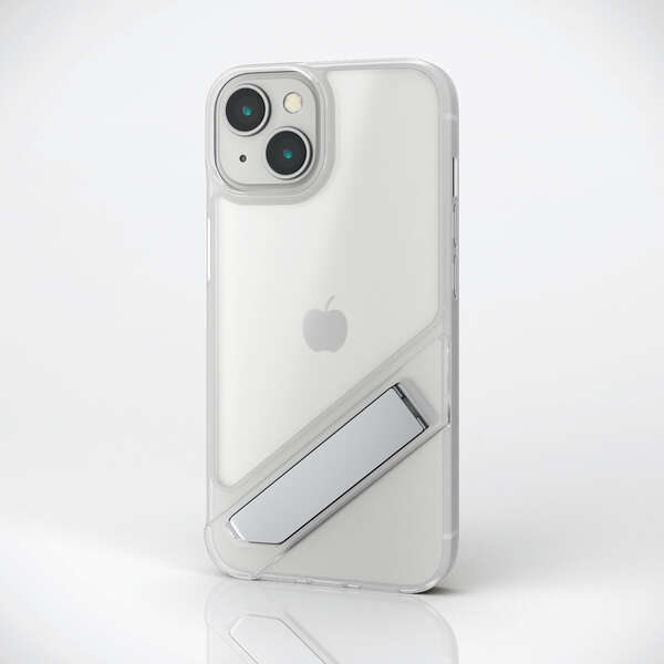 背面に折り畳めるスリムなスタンドを装備した、動画視聴が快適なiPhone 14/iPhone 13用スタンド機能付きハイブリッドケースです。