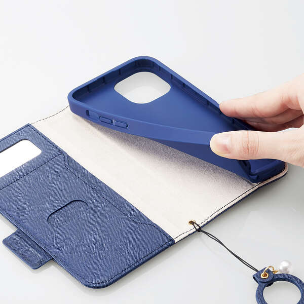 ずっと好きでいられる、ベーシックな可愛さ。フィンガーストラップ付きiPhone 14/iPhone 13用ソフトレザーケース(手帳型)です。