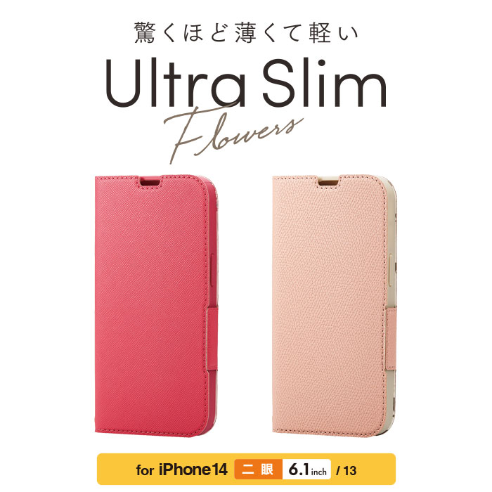 本体の薄さ、軽さを損ねない薄型・超軽量なウルトラスリムタイプのiPhone 14/iPhone 13用ソフトレザーケース(手帳型)です。