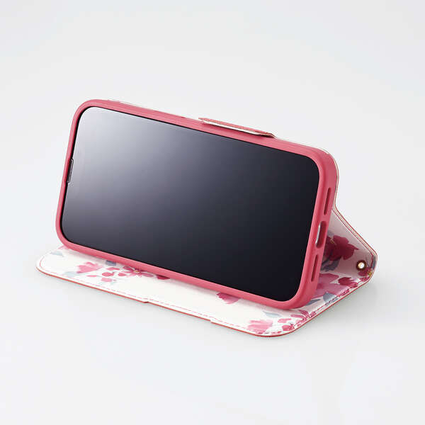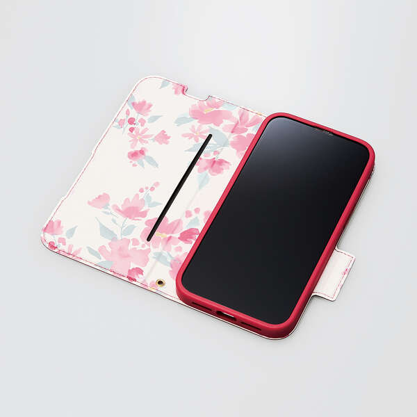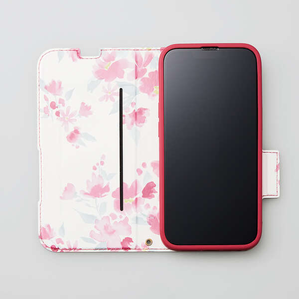 iPhone 14 ソフトレザーケース 薄型 磁石付 フラワーズ