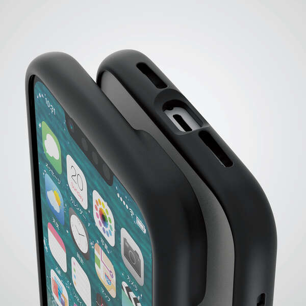 全周に配置した独自設計のエアクッションが衝撃を吸収し、背面には高硬度ガラスに指紋が付きにくい特殊加工を採用した、iPhone 14/iPhone 13用TOUGH SLIM LITEケースです。