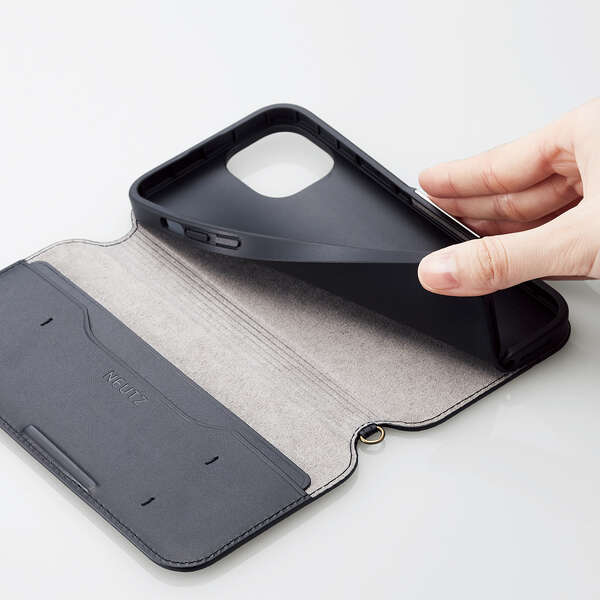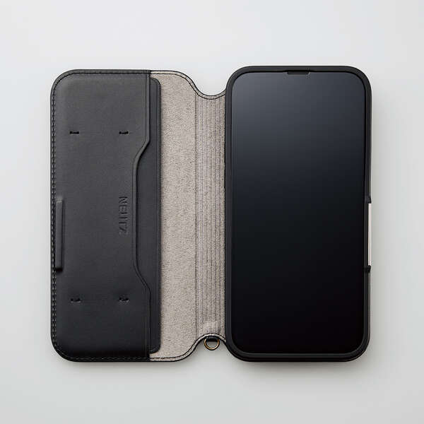 なめらかな質感で、誰の手にも馴染みやすいシンプルな形とカラーを採用したiPhone 14 Plus用ソフトレザーケース(手帳型)です。