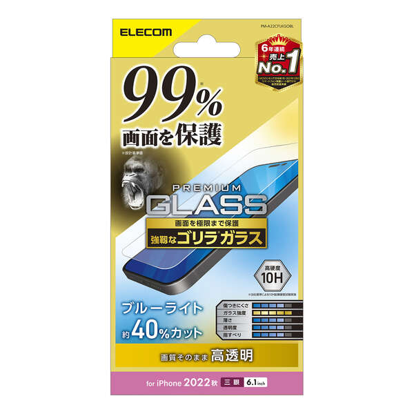 • 液晶画面カバー率99%。超極み設計でGorilla(R)ガラスを採用した薄型・ブルーライトカットタイプのiPhone 14 Pro用液晶保護ガラスです。