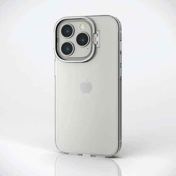 背面カメラ周りにカメラガードの機能ももつ、折り畳めるスタンドを装備した、動画視聴が快適なiPhone 14 Pro用スタンド機能付きハイブリッドケースです。