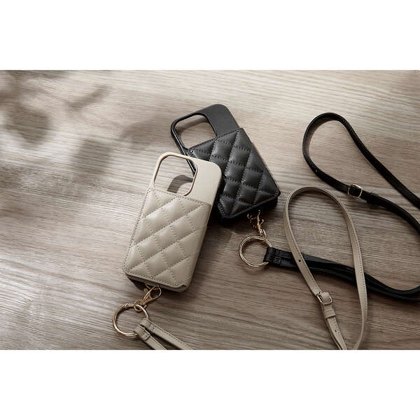 持ち運びに便利なショルダーストラップとコインケース、カードポケットもついたマルチに活躍するiPhone 14 Pro用ソフトレザーケースです。