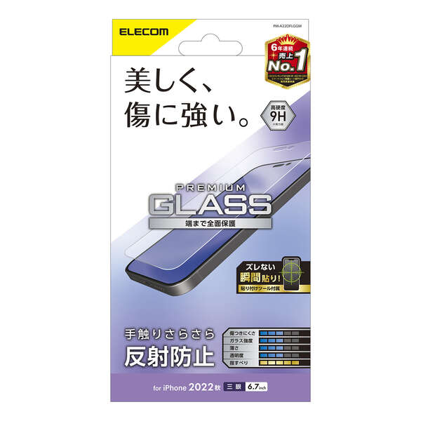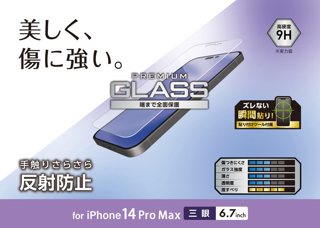 ガラス特有のなめらかな指滑りを実現する反射防止タイプのiPhone 14 Pro Max用液晶保護ガラスです。