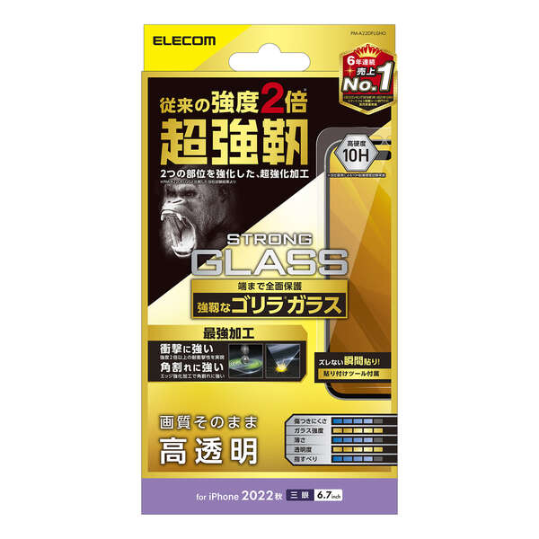 エッジ部分の強化により角割れに強いガラスフィルムです。