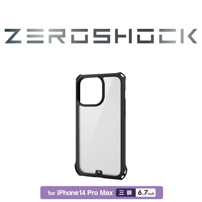 機器本体のカラーをそのまま活かせる背面クリアパネルに、衝撃吸収構造を兼ね備えたiPhone 14 Pro Max用ZEROSHOCKフレームケースです。