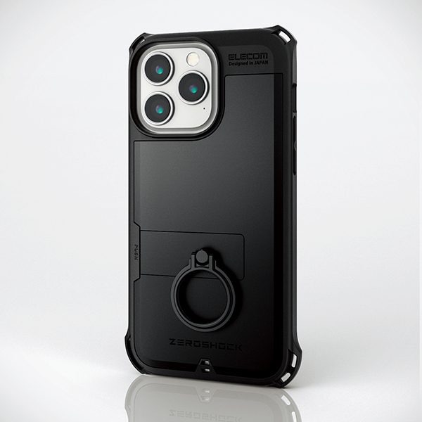 全方向の衝撃から機器本体を守るiPhone 14 Pro Max用ZEROSHOCKリング付きケースです。