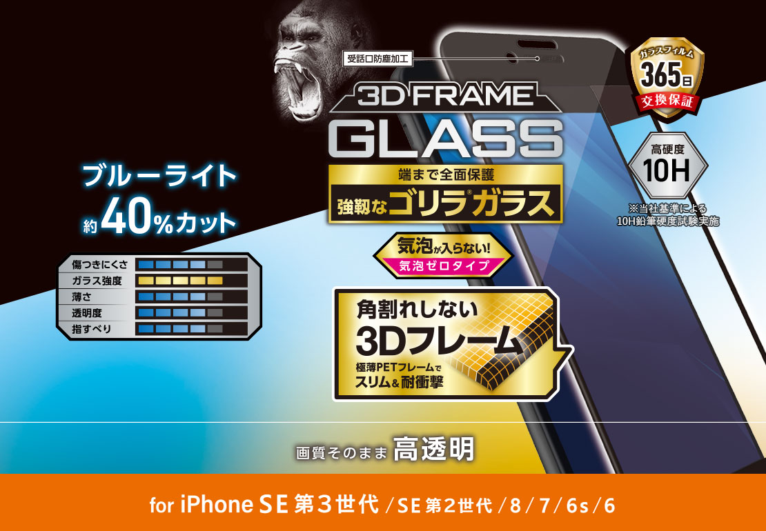 極薄でも強靭な、Gorilla®ガラスを採用した液晶保護ガラス。