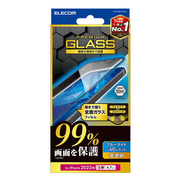 • 画面カバー率99%。超極み設計を採用したブルーライトカットタイプの画面保護ガラスです。