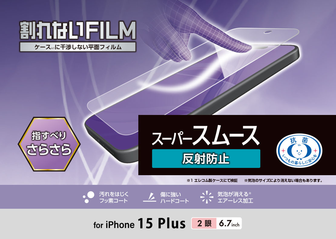 iPhone 15 Plus フィルム スムース 指紋防止 反射防止