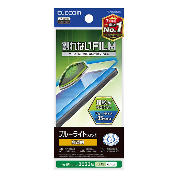 端末の画面を傷や汚れから守る、ブルーライトカットタイプの高透明フィルムです。
