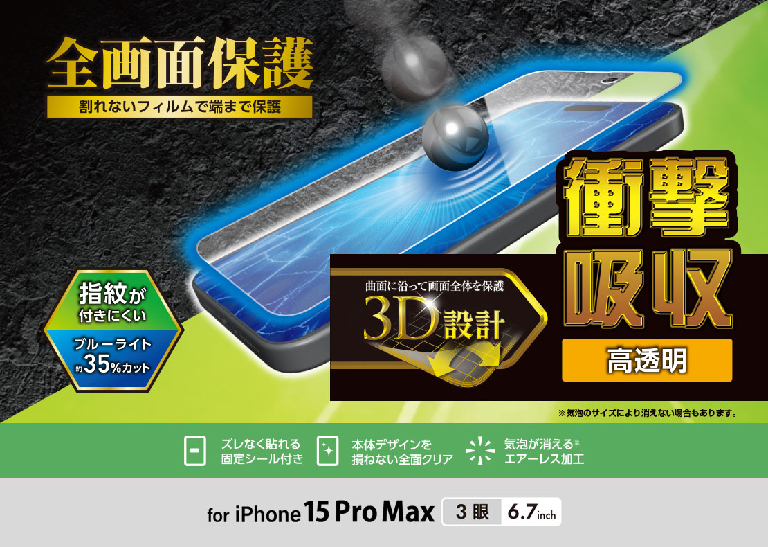 特殊構造のフィルムが衝撃を緩和し、液晶画面をキズや汚れから守る衝撃吸収フィルムです。