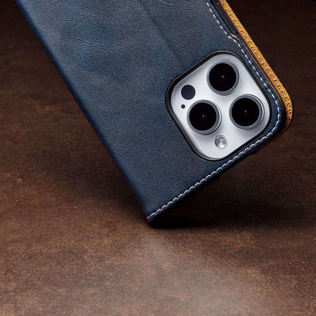 iPhone 15 Pro Max ソフトレザーケース 手帳型 磁石付 耐衝撃 ステッチ