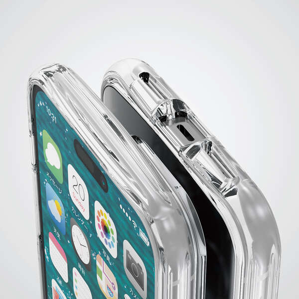 独自設計のエアクッションが衝撃を吸収するオールクリアタイプのTOUGH SLIM LITEケース