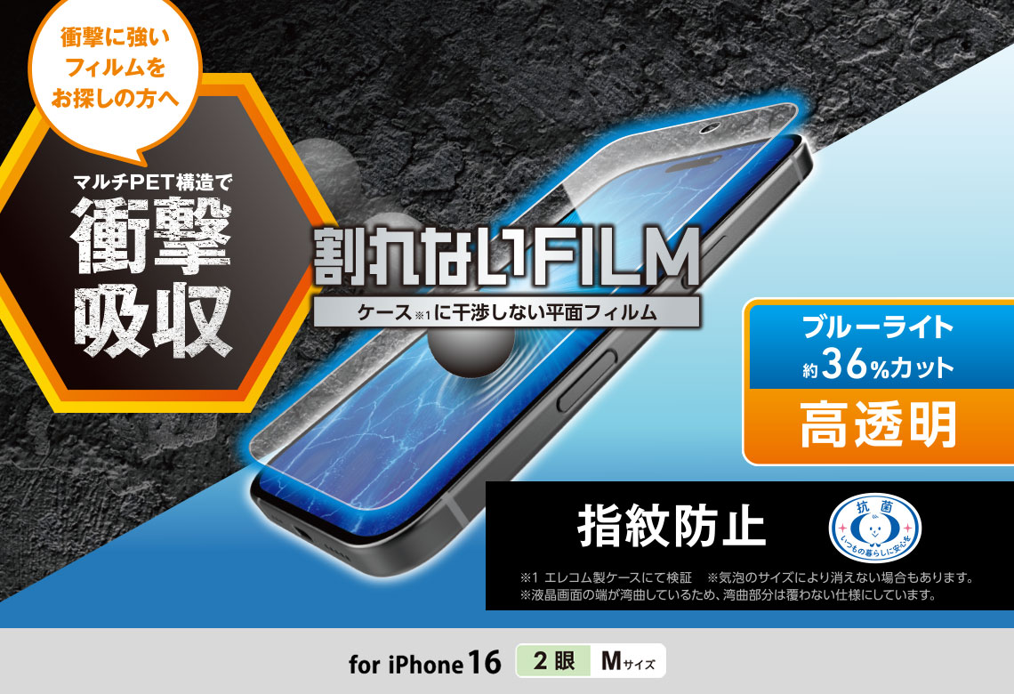 特殊構造のフィルムが衝撃を緩和し、液晶画面をキズや汚れから守る衝撃吸収フィルムです。