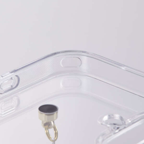 側面には弾力性のあるTPU(熱可塑性ポリウレタン)素材を、背面には強じんで透明度の高いポリカーボネート素材を使用しています。手を通せるビーズタイプのハンドバンドを装着した、スリムなスタイルのハイブリッドケースです。