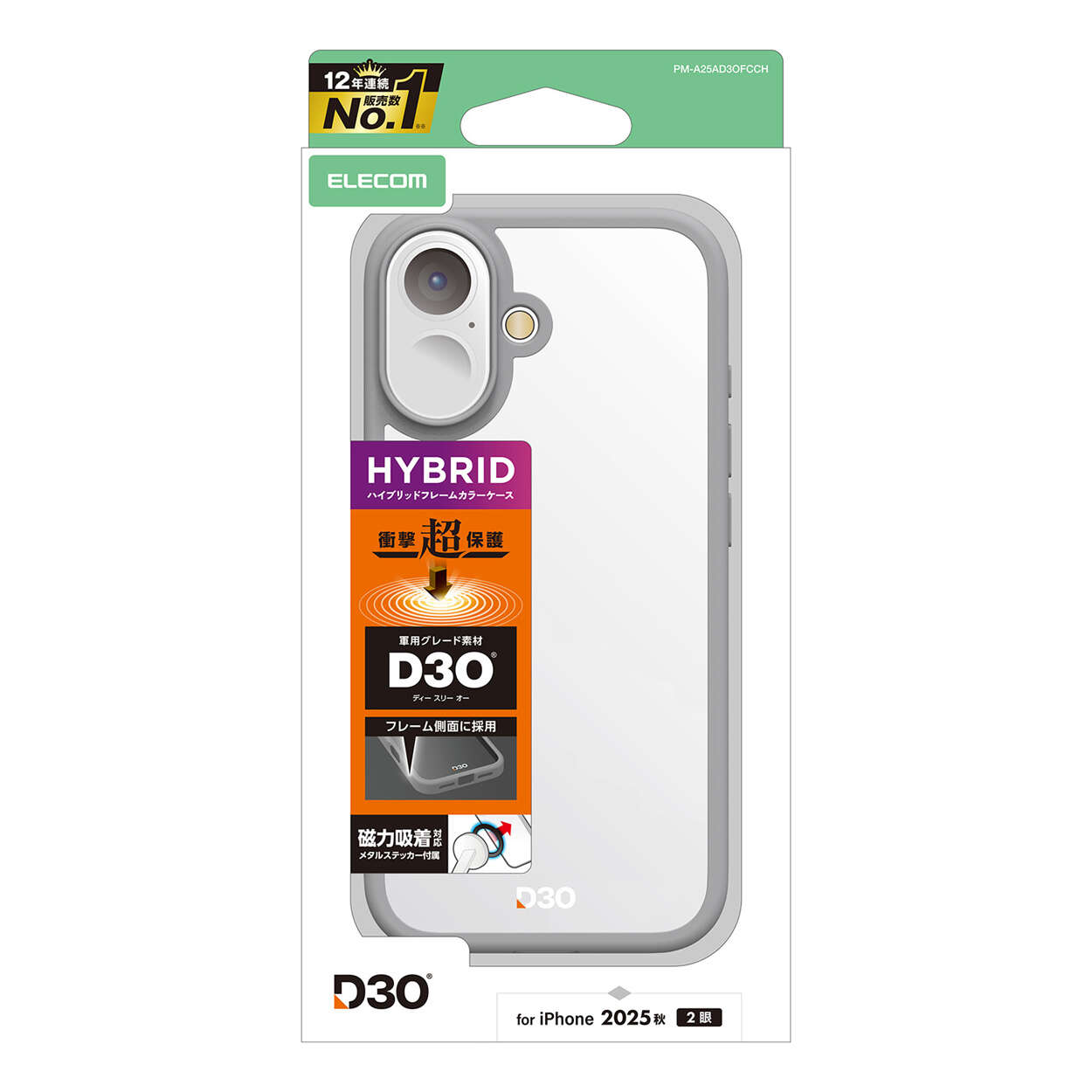 iPhone 17 ハイブリッドケース D3O フレームカラー メタルステッカー付