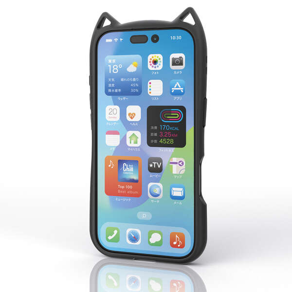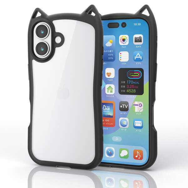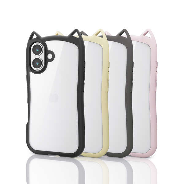 猫耳型のアクセントが可愛らしく、背面のクリアパネルで端末本来のカラーを活かしながら、遊び心と実用性を兼ね備えたハイブリッドケースです。