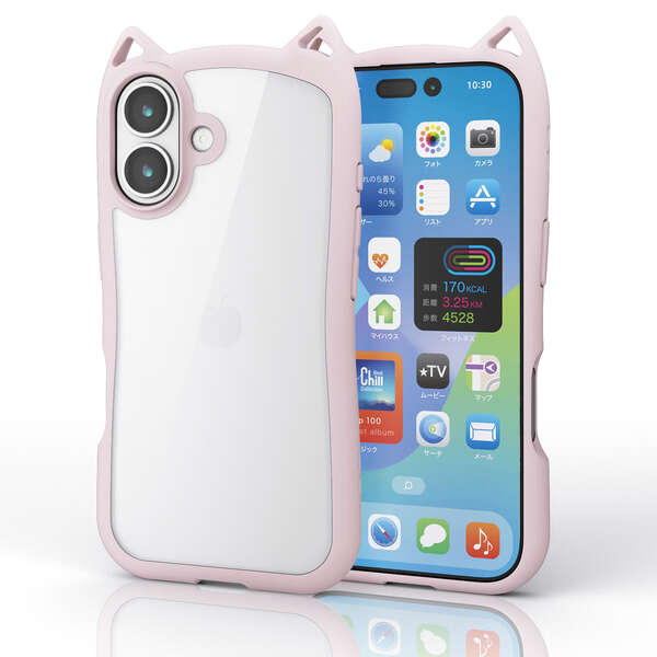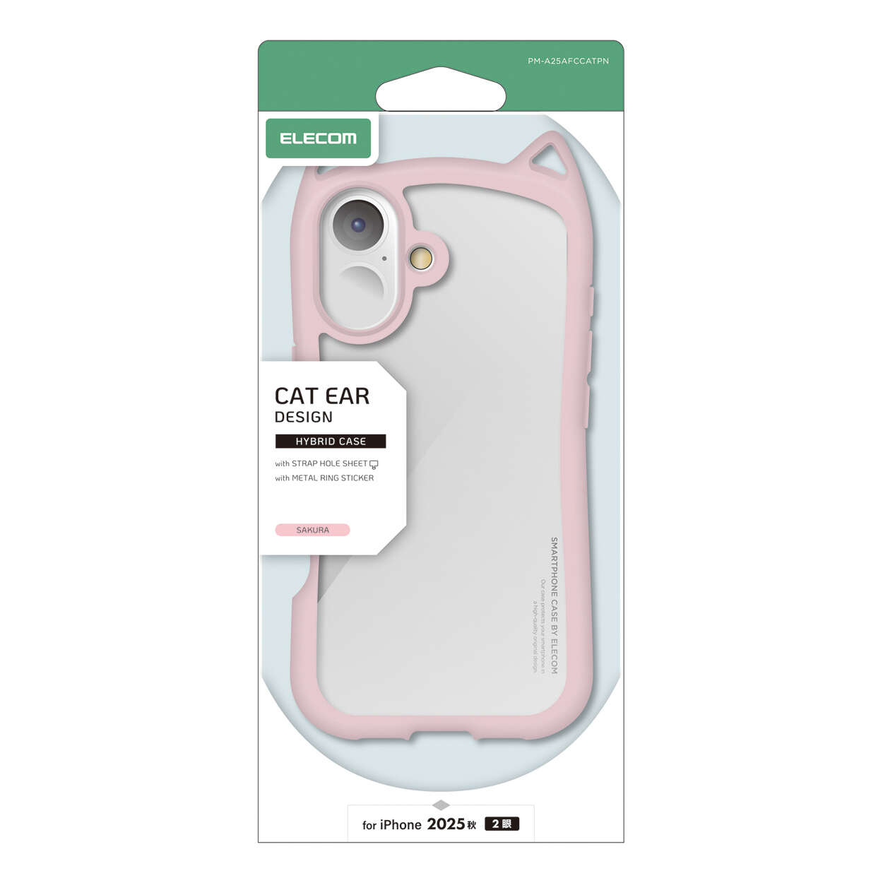 猫耳型のアクセントが可愛らしく、背面のクリアパネルで端末本来のカラーを活かしながら、遊び心と実用性を兼ね備えたハイブリッドケースです。