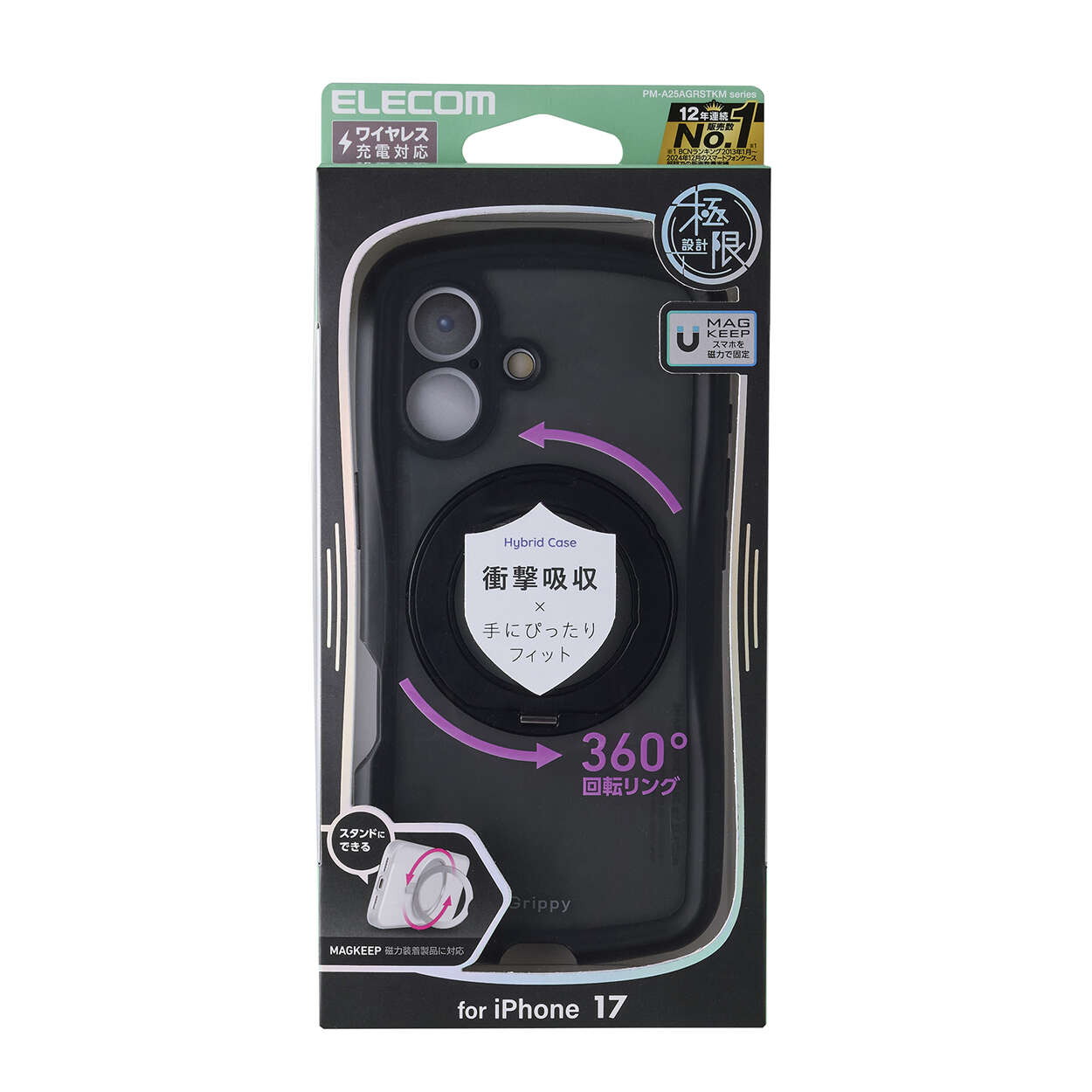 磁力装着タイプのワイヤレス充電器に対応した“MAGKEEP”に、あらゆる部位を徹底的にカバーする極限設計を採用。側面には弾力性のあるTPU(熱可塑性ポリウレタン)素材を、背面には強じんなポリカーボネート素材にスタンドを装着。中央のくびれ形状に平坦な面を設けることで、手に馴染む快適なグリップ感を実現したGrippyシリーズのスタンド付きハイブリッドケースです。