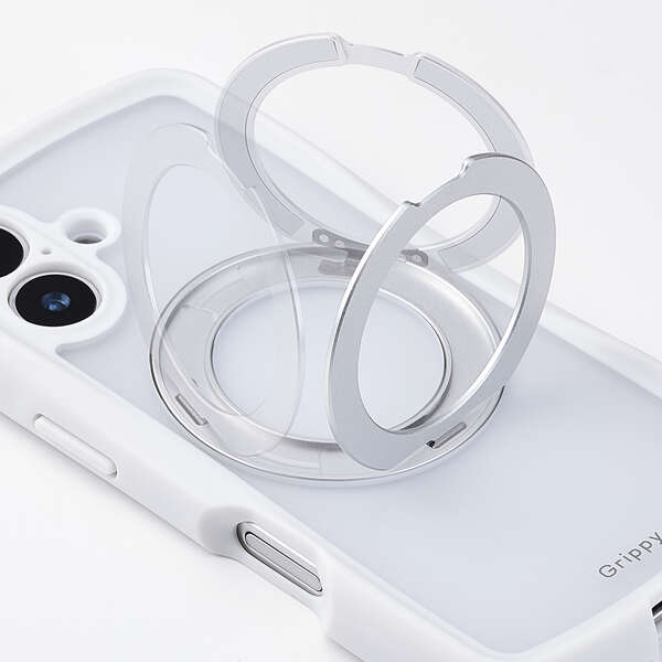 磁力装着タイプのワイヤレス充電器に対応した“MAGKEEP”に、あらゆる部位を徹底的にカバーする極限設計を採用。側面には弾力性のあるTPU(熱可塑性ポリウレタン)素材を、背面には強じんなポリカーボネート素材にスタンドを装着。中央のくびれ形状に平坦な面を設けることで、手に馴染む快適なグリップ感を実現したGrippyシリーズのスタンド付きハイブリッドケースです。