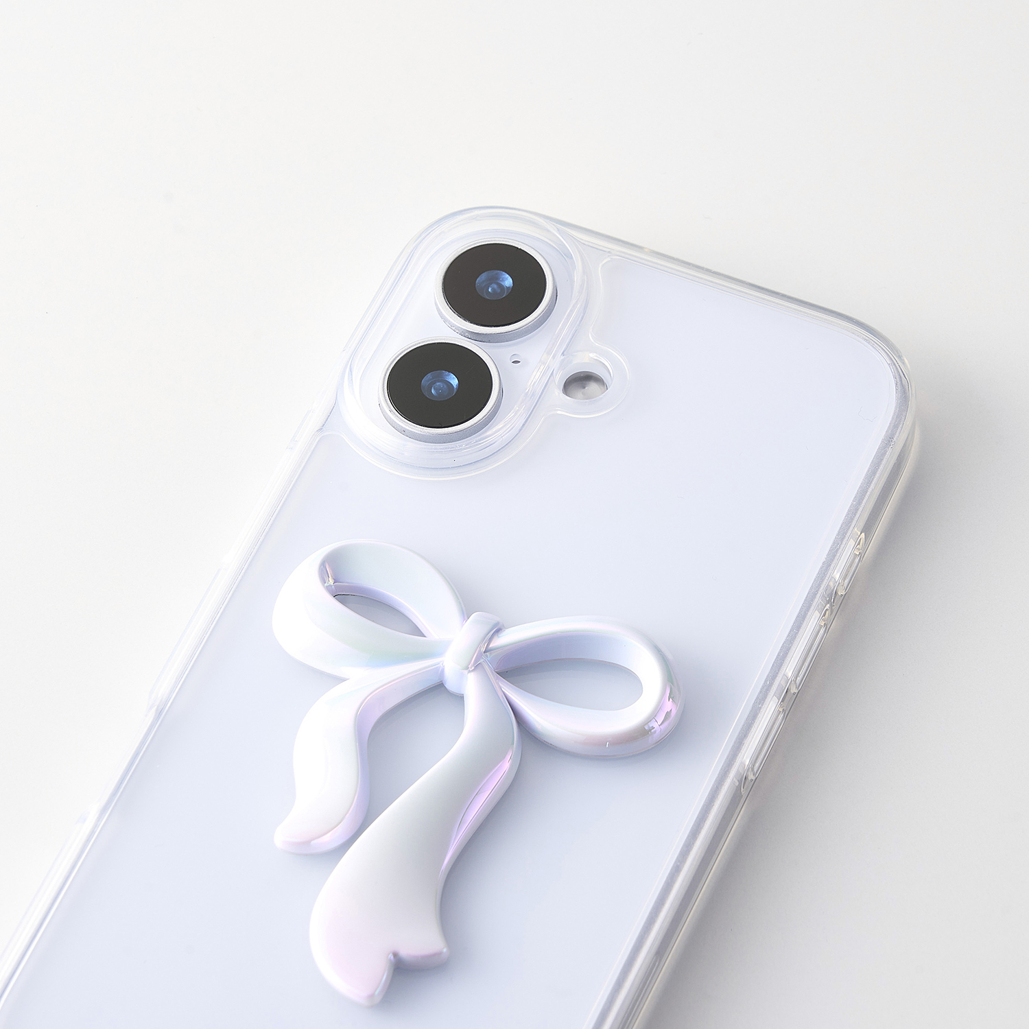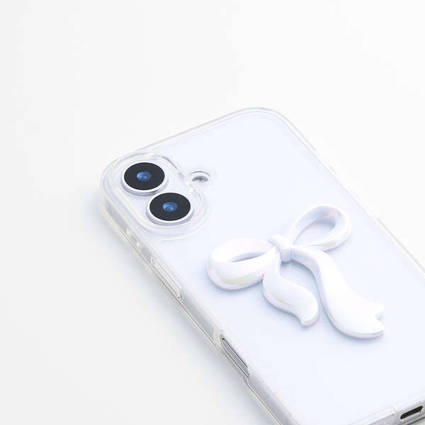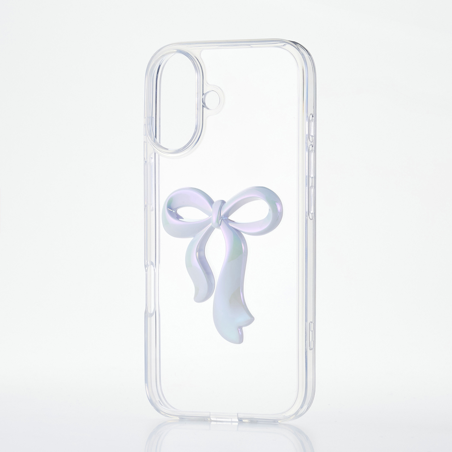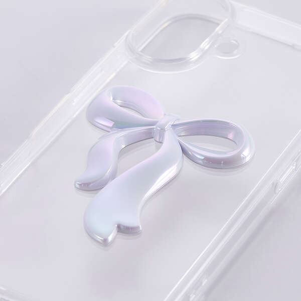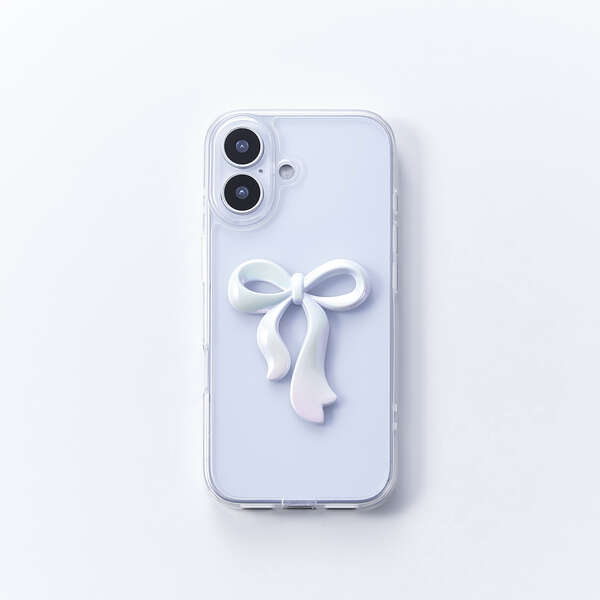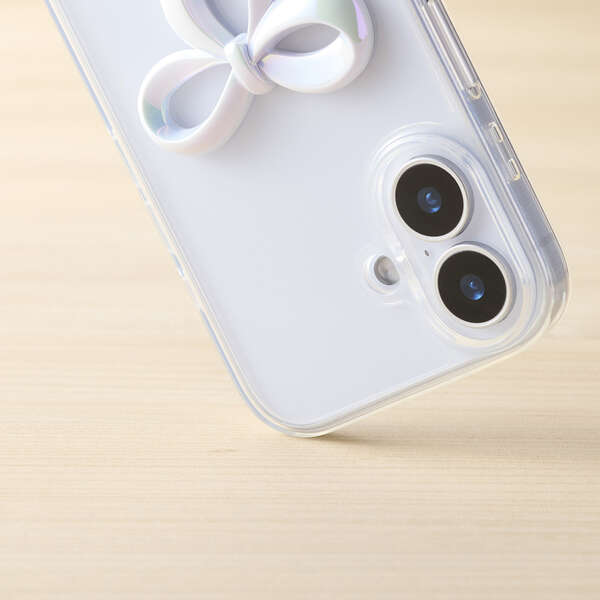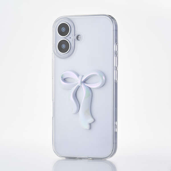 透明感のあるクリア素材に、さりげなく輝くリボンのアクセントが可愛いハイブリッドケースです。