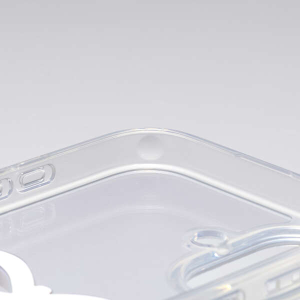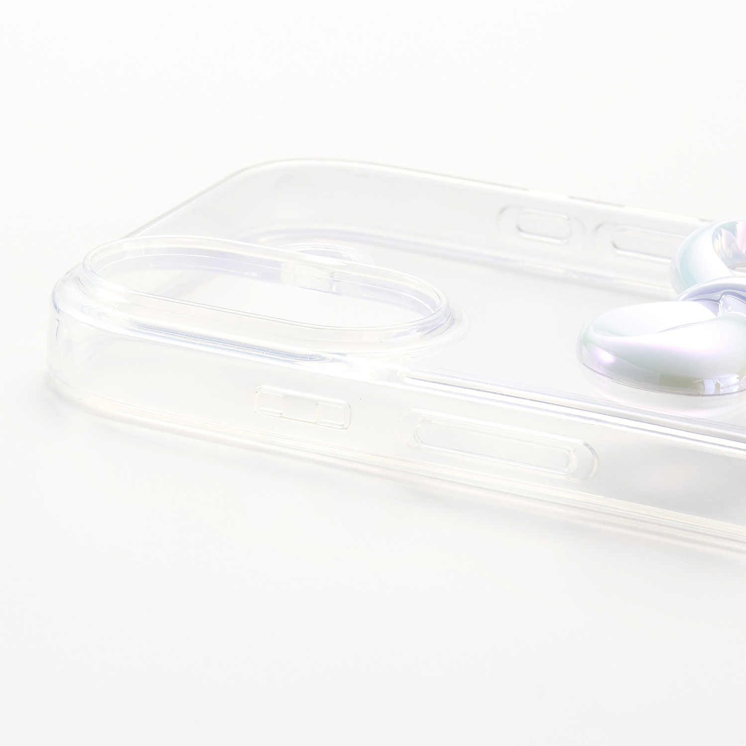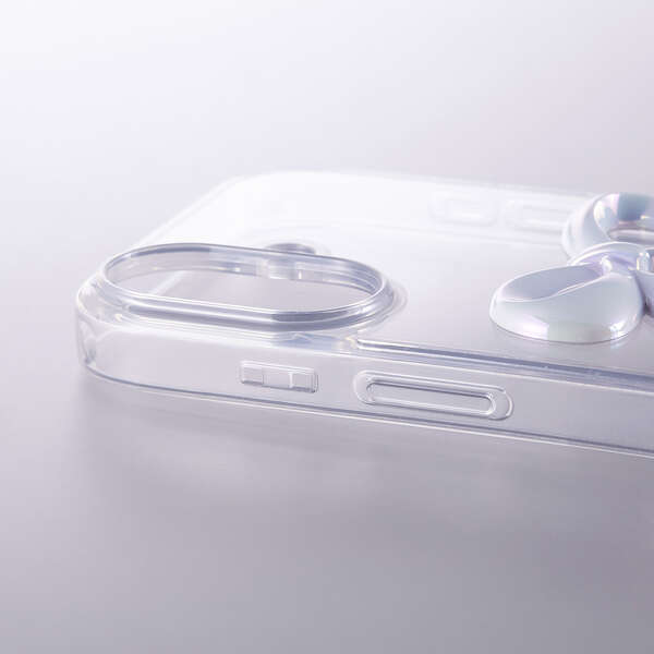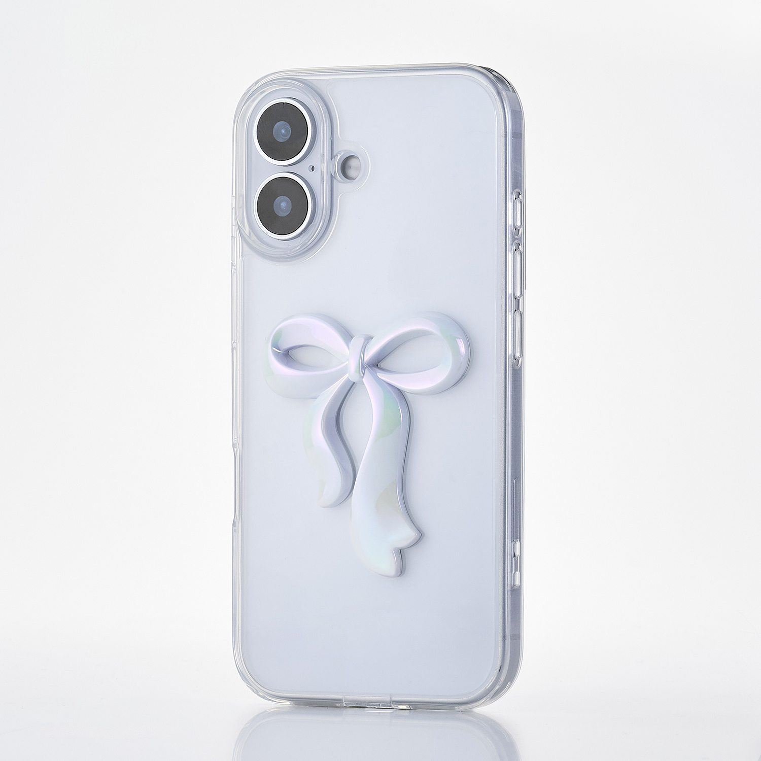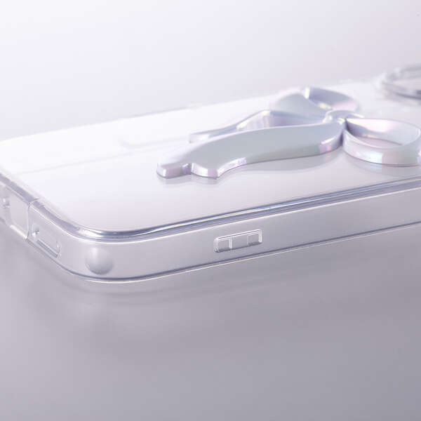 透明感のあるクリア素材に、さりげなく輝くリボンのアクセントが可愛いハイブリッドケースです。