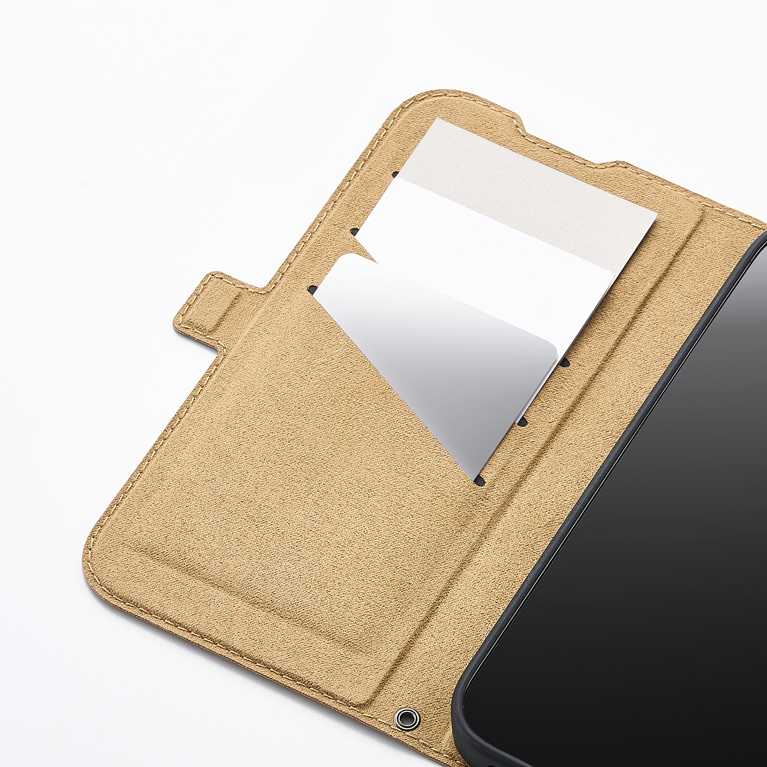 フラップの内側に、メモやカードなどが収納できるカードポケットが付いています。カードを出し入れすることなく、そのままICカードを使用可能です。