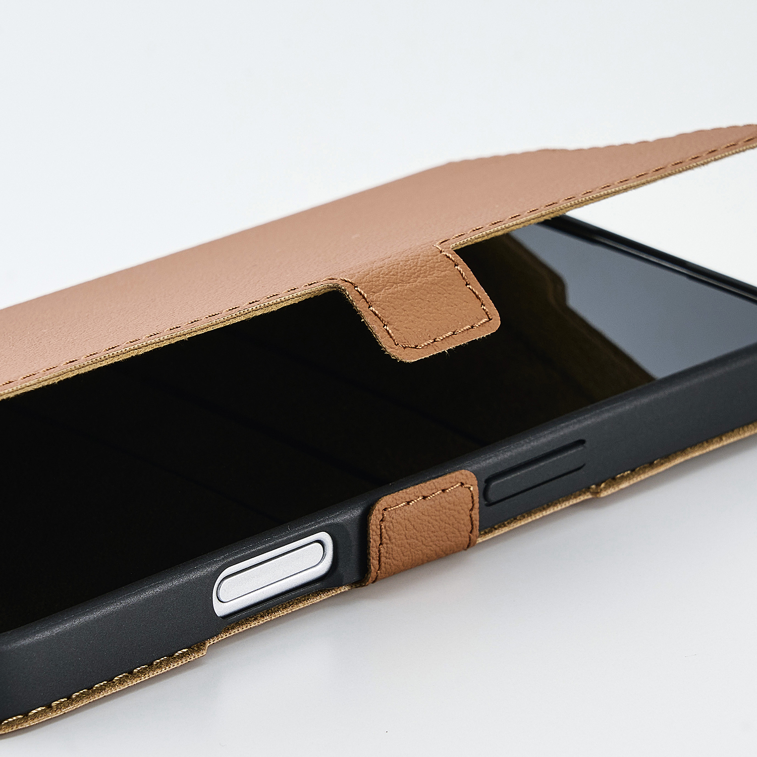 端末の薄さや軽さを損ねないスリムタイプのソフトレザーケース