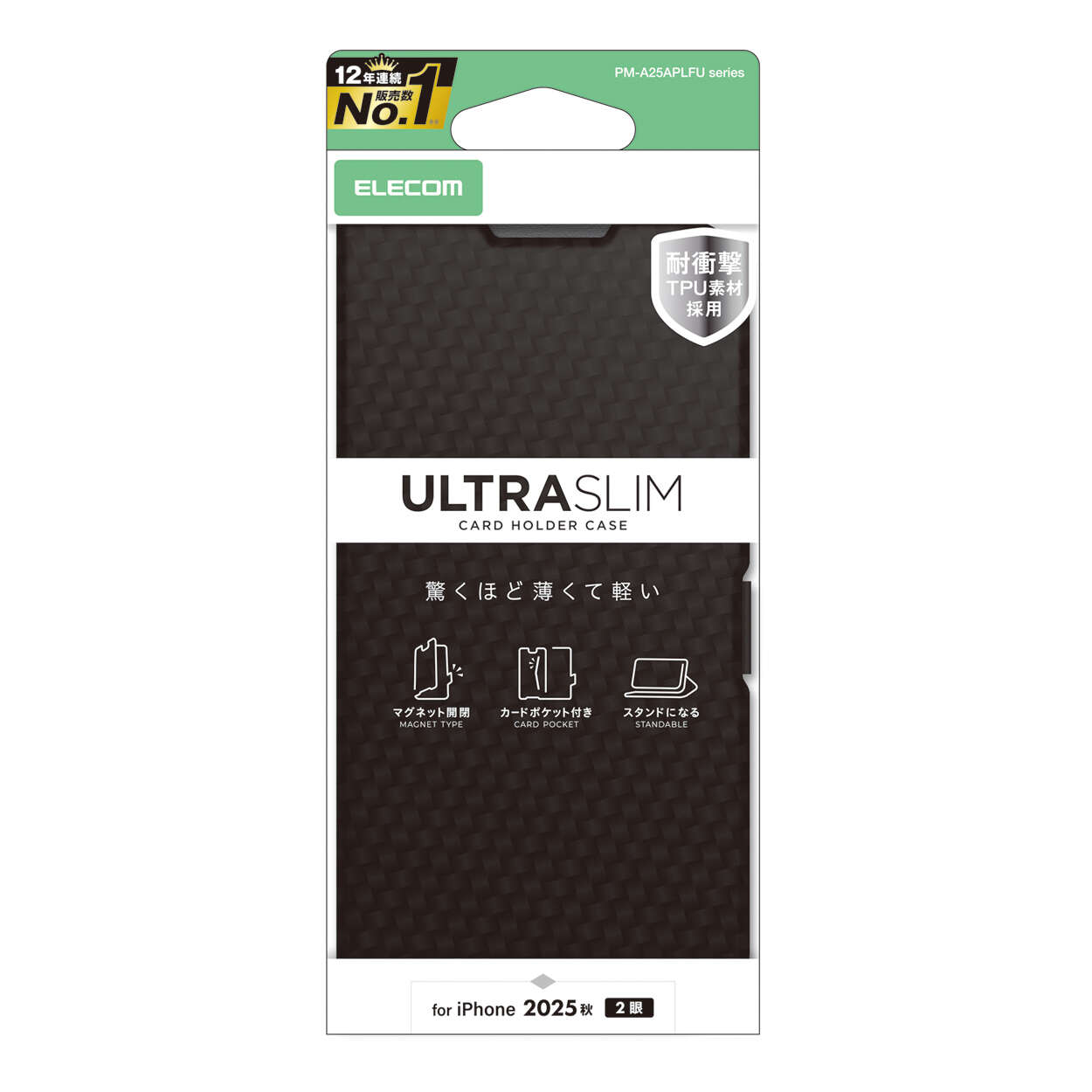 端末の薄さや軽さを損ねない、薄型・超軽量なウルトラスリムタイプの手帳型ケースです。