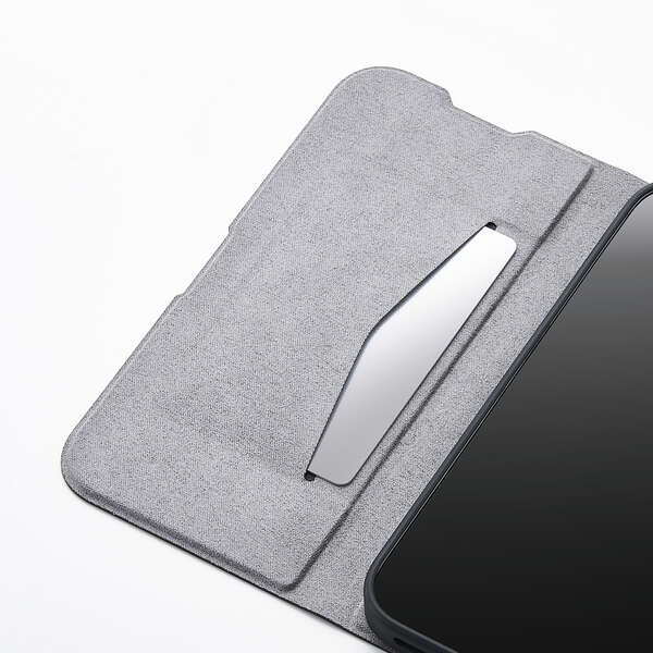 不使用時に画面部分をカバーする、横開きタイプのフラップが付いています。