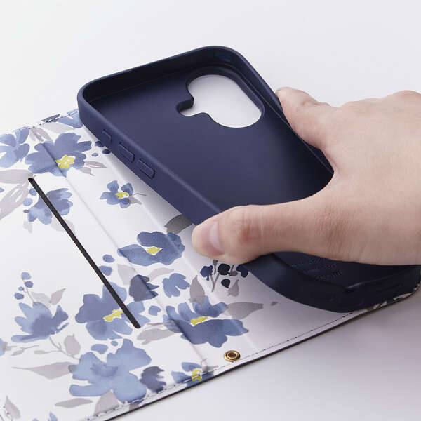 ケース内側に、愛らしいフラワープリントを施しています。