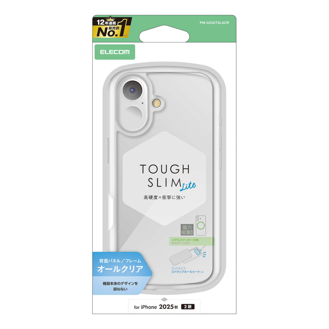 全周に配置した独自設計のエアークッションが衝撃を吸収し、側面に弾力性のあるTPU(熱可塑性ポリウレタン)素材を、背面に高硬度のポリカーボネート素材を使用した、端末のデザインが美しく際立つオールクリアタイプのTOUGH SLIM LITEケースです。