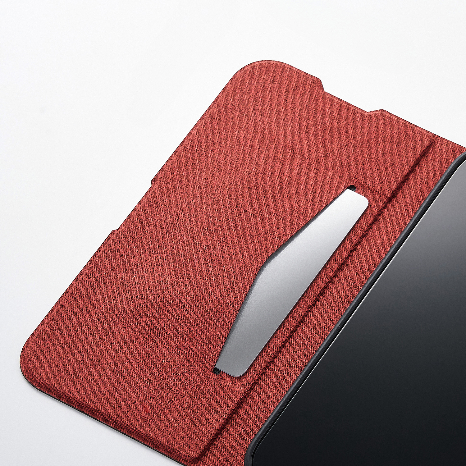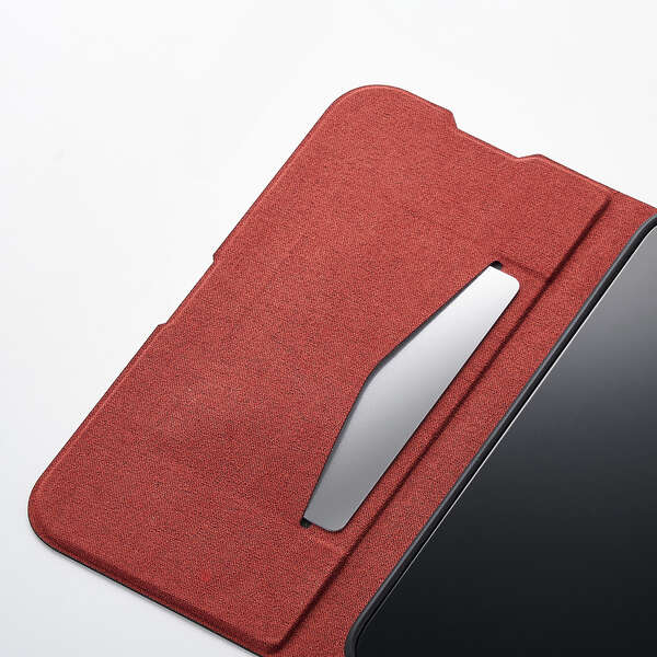 不使用時に画面部分をカバーする、横開きタイプのフラップが付いています。