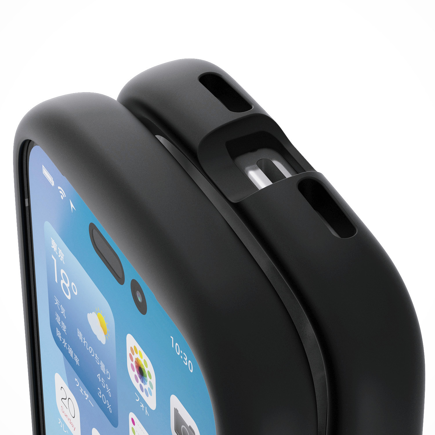 全周に配置した独自設計のエアークッションが衝撃を吸収し、背面には高硬度のポリカーボネート素材を採用。中央のくびれ形状に平坦な面を設けることで、手に馴染む快適なグリップ感を実現したGrippyシリーズのハイブリッドケースです。アクセントとして楽しめるフレームカラータイプです。