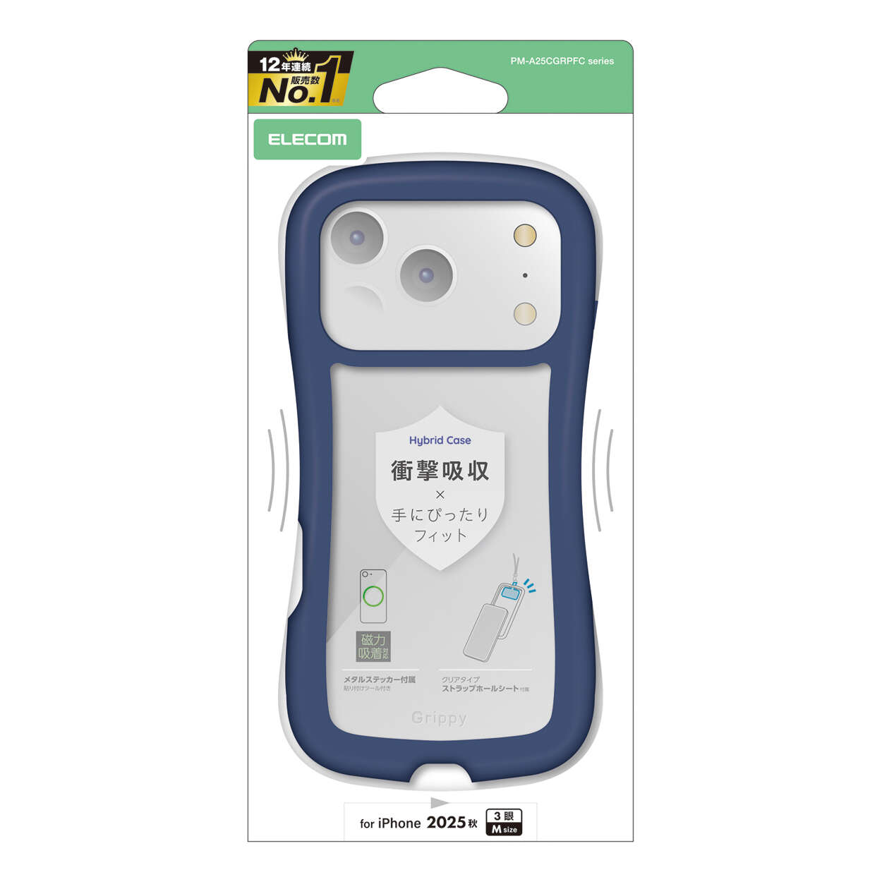 全周に配置した独自設計のエアークッションが衝撃を吸収し、背面には高硬度のポリカーボネート素材を採用。中央のくびれ形状に平坦な面を設けることで、手に馴染む快適なグリップ感を実現したGrippyシリーズのハイブリッドケースです。アクセントとして楽しめるフレームカラータイプです。