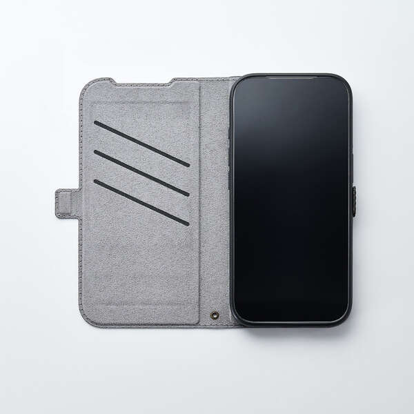 便利な機能を搭載した、革のような柔らかな風合いの手帳型ケースです。