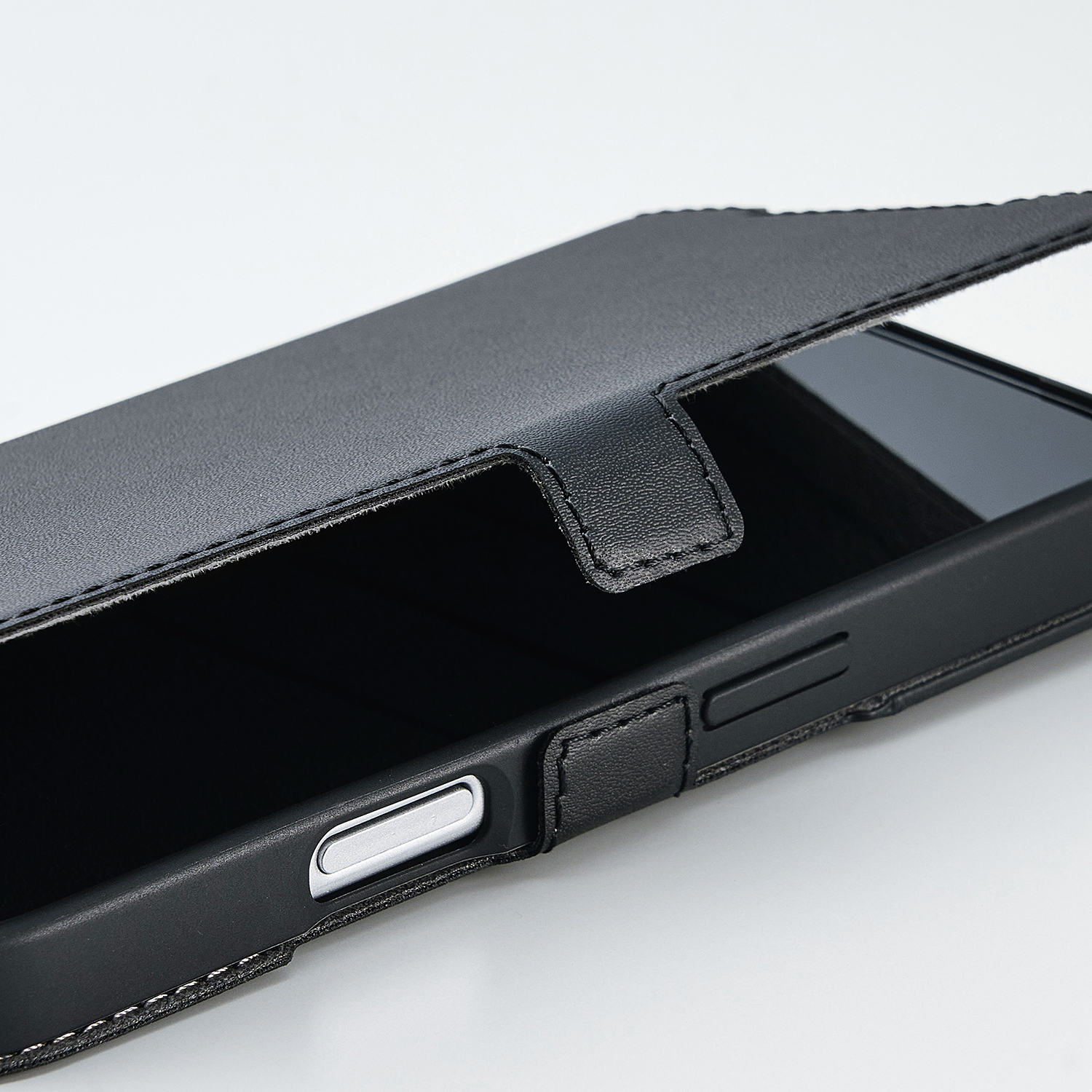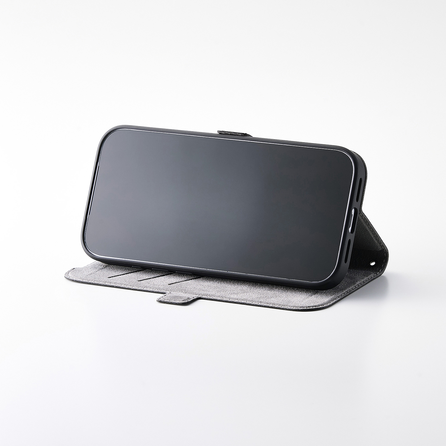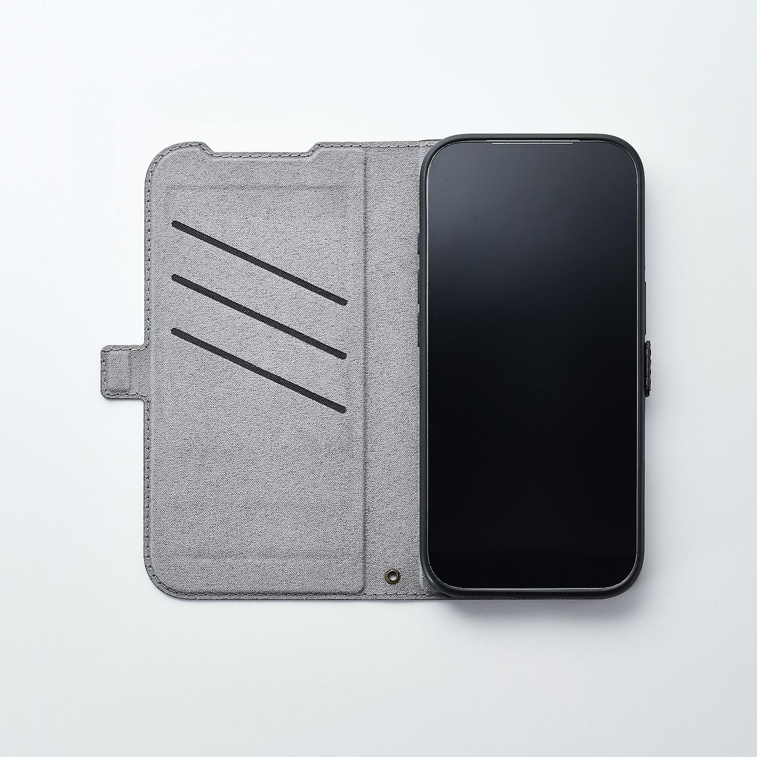 横開きタイプのフラップは内側が起毛となっていて、不使用時の画面を保護します。