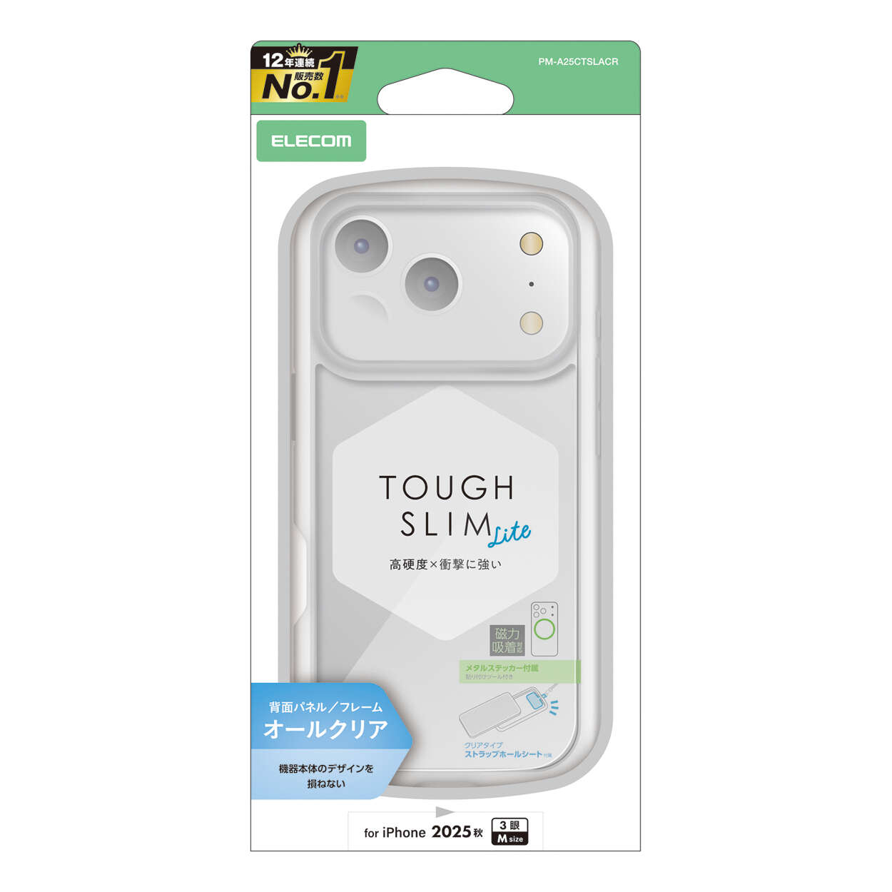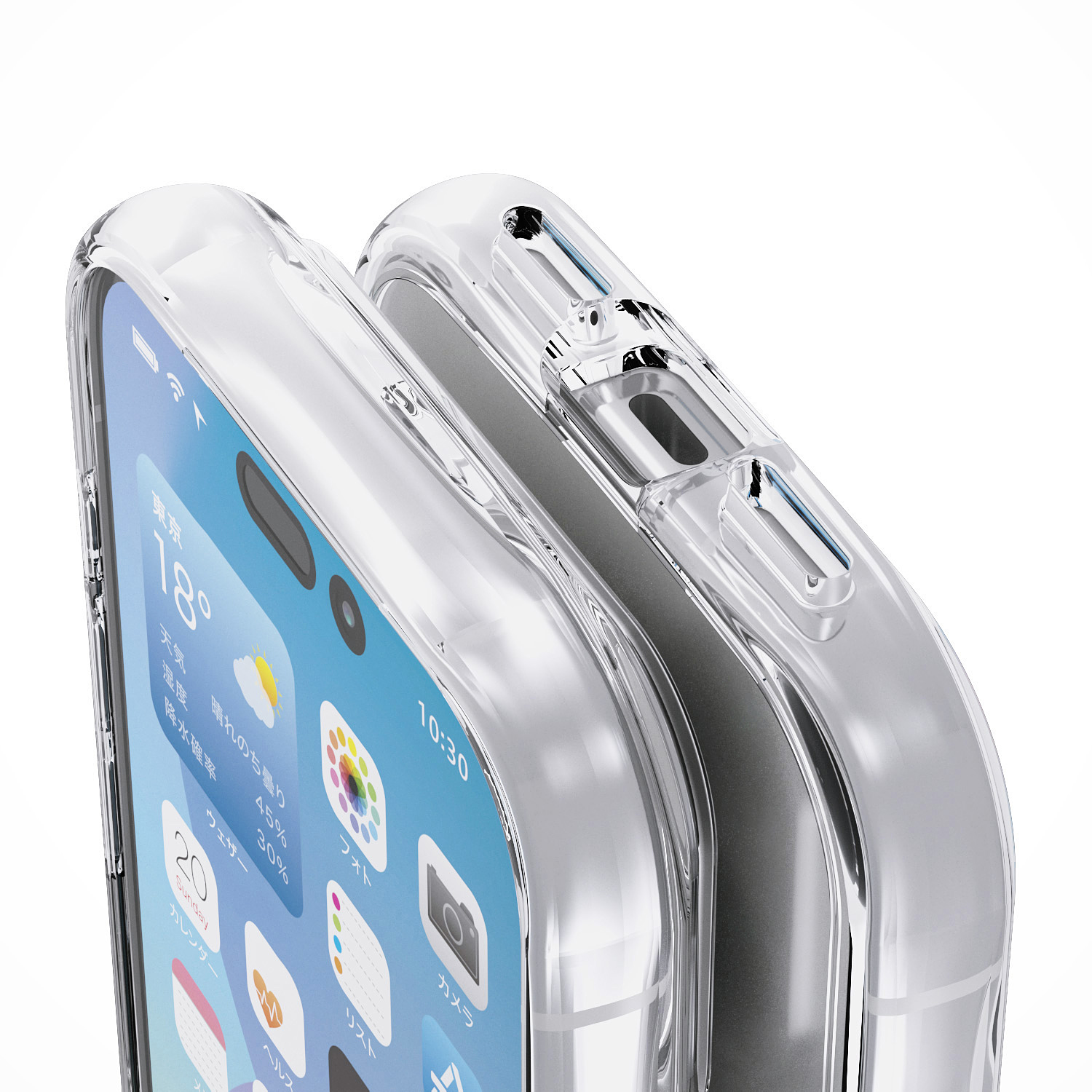全周に配置した独自設計のエアークッションが衝撃を吸収し、側面に弾力性のあるTPU(熱可塑性ポリウレタン)素材を、背面に高硬度のポリカーボネート素材を使用した、端末のデザインが美しく際立つオールクリアタイプのTOUGH SLIM LITEケースです。