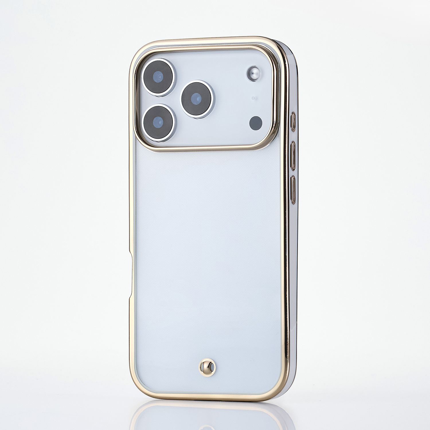 側面のエッジ部分やカメラ周り部分にメタリックラインを施した、上品な輝きを放つ高級感のあるソフトケースです。