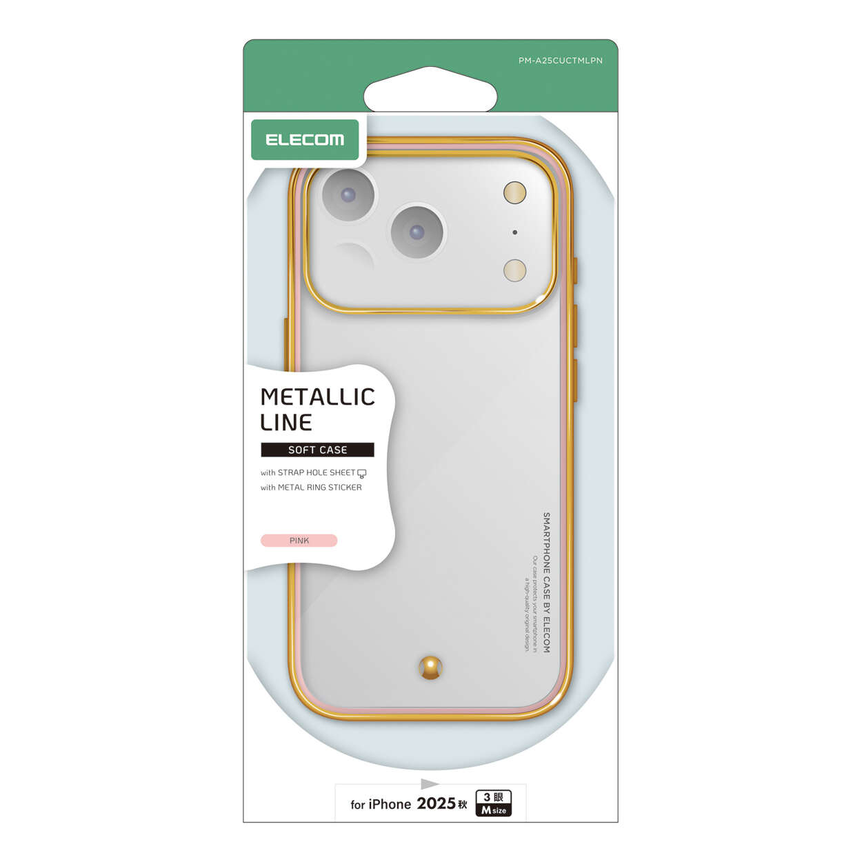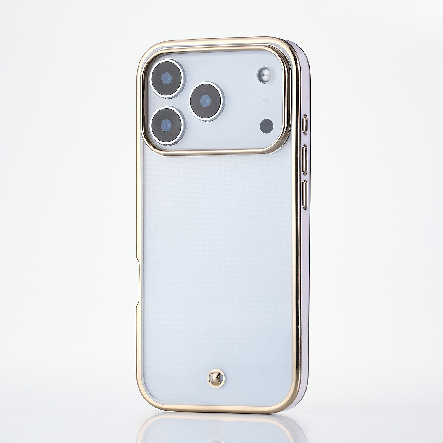 側面のエッジ部分やカメラ周り部分にメタリックラインを施した、上品な輝きを放つ高級感のあるソフトケースです。