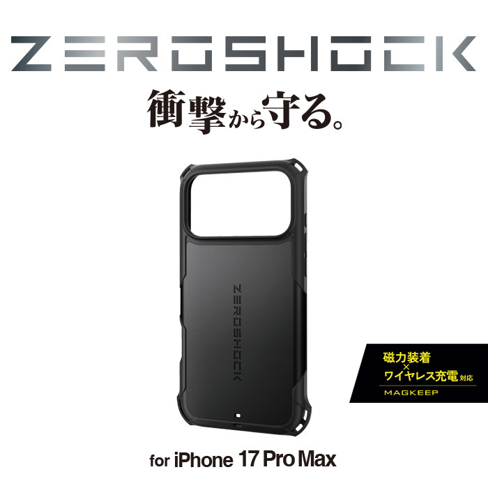 磁力装着タイプのワイヤレス充電器に対応した“MAGKEEP”シリーズ。落下時に最も大きな衝撃が予想される四つ角にバンパーを設置し、効率的に衝撃を吸収する耐衝撃性ZEROSHOCKケースです。
