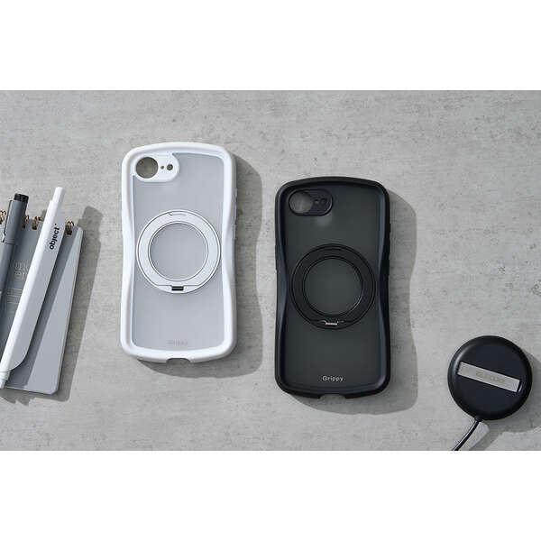 磁力装着タイプのワイヤレス充電器に対応した“MAGKEEP”に、あらゆる部位を徹底的にカバーする極限設計を採用。側面には弾力性のあるTPU(熱可塑性ポリウレタン)素材を、背面には強じんなポリカーボネート素材にスタンドを装着。中央のくびれ形状に平坦な面を設けることで、手に馴染む快適なグリップ感を実現したGrippyシリーズのスタンド付きハイブリッドケースです。