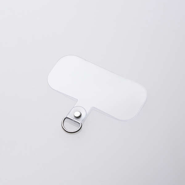 ショルダーストラップやハンドストラップが取り付けられる、ストラップホールシート(1つ穴・半透明タイプ)が付属しています。