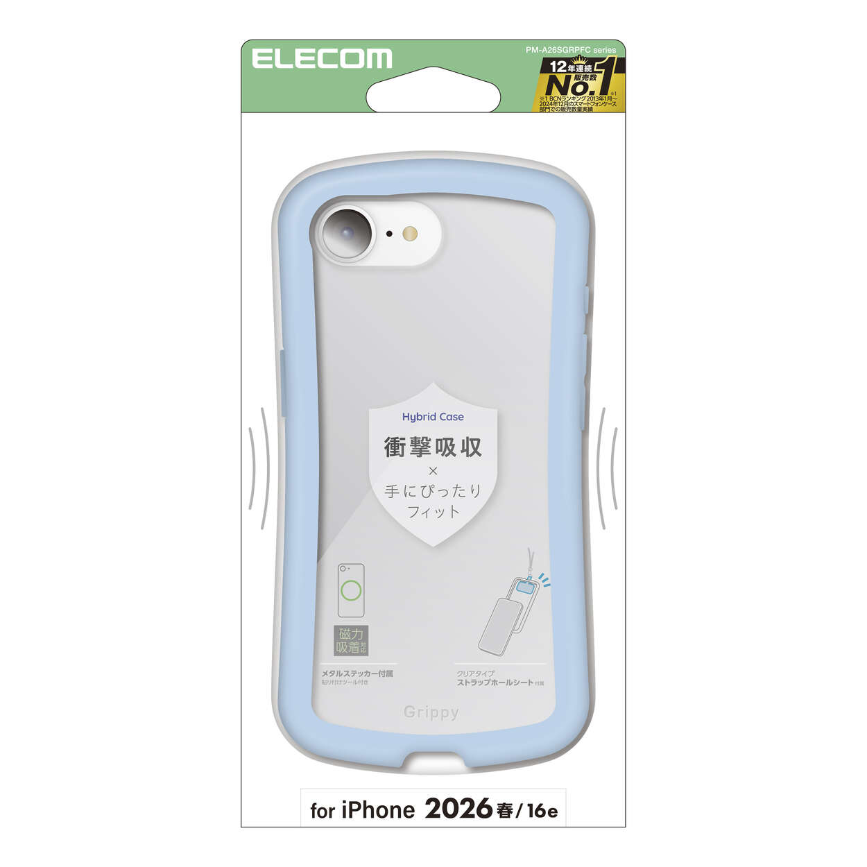 iPhone 17e/16e Grippy ハイブリッドケース フレームカラー メタルステッカー付