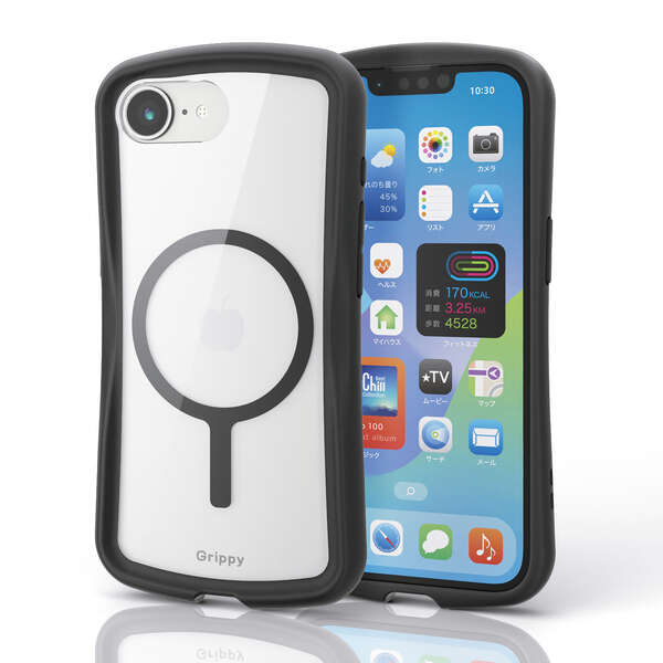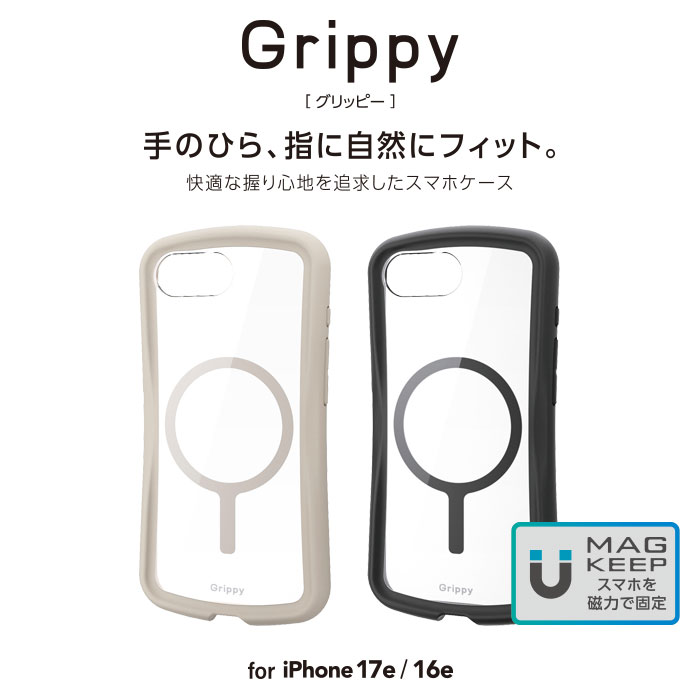 磁力装着タイプのワイヤレス充電器に対応した“MAGKEEP”。全周に配置した独自設計のエアークッションが衝撃を吸収し、背面には高硬度のポリカーボネート素材を採用。中央のくびれ形状に平坦な面を設けることで、手に馴染む快適なグリップ感を実現したGrippyシリーズのハイブリッドケース、フレームカラータイプです。